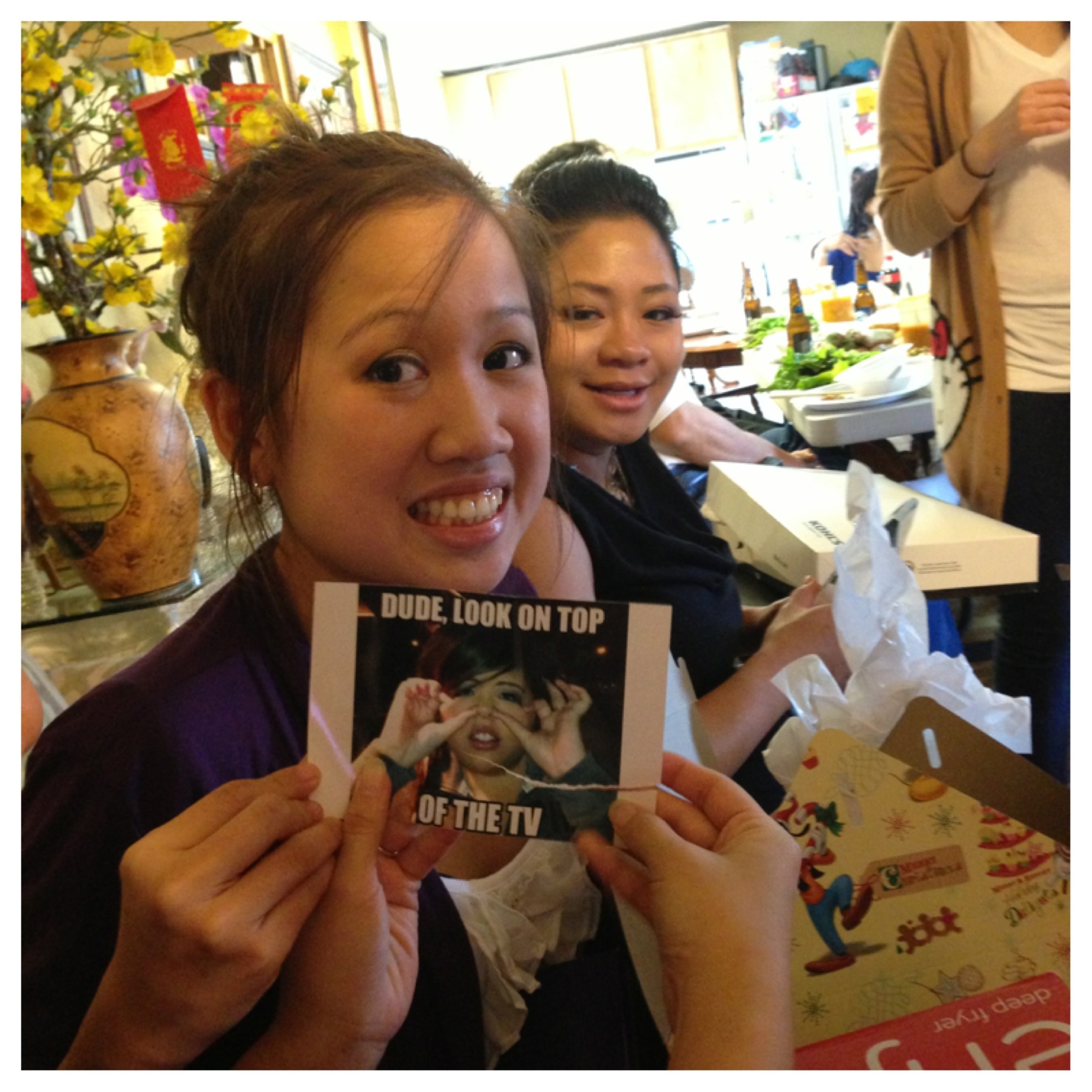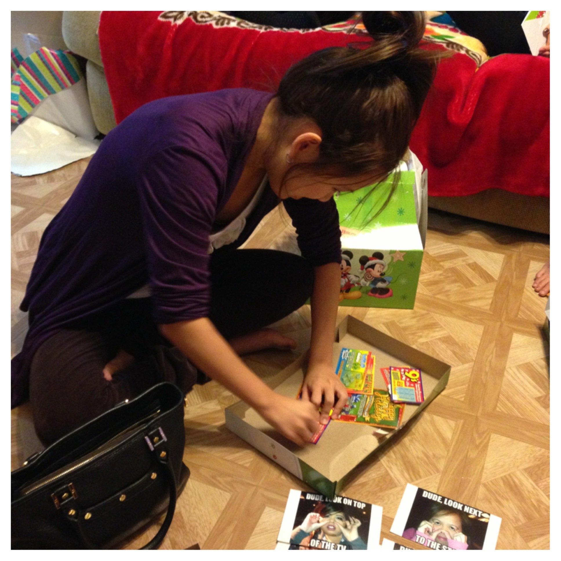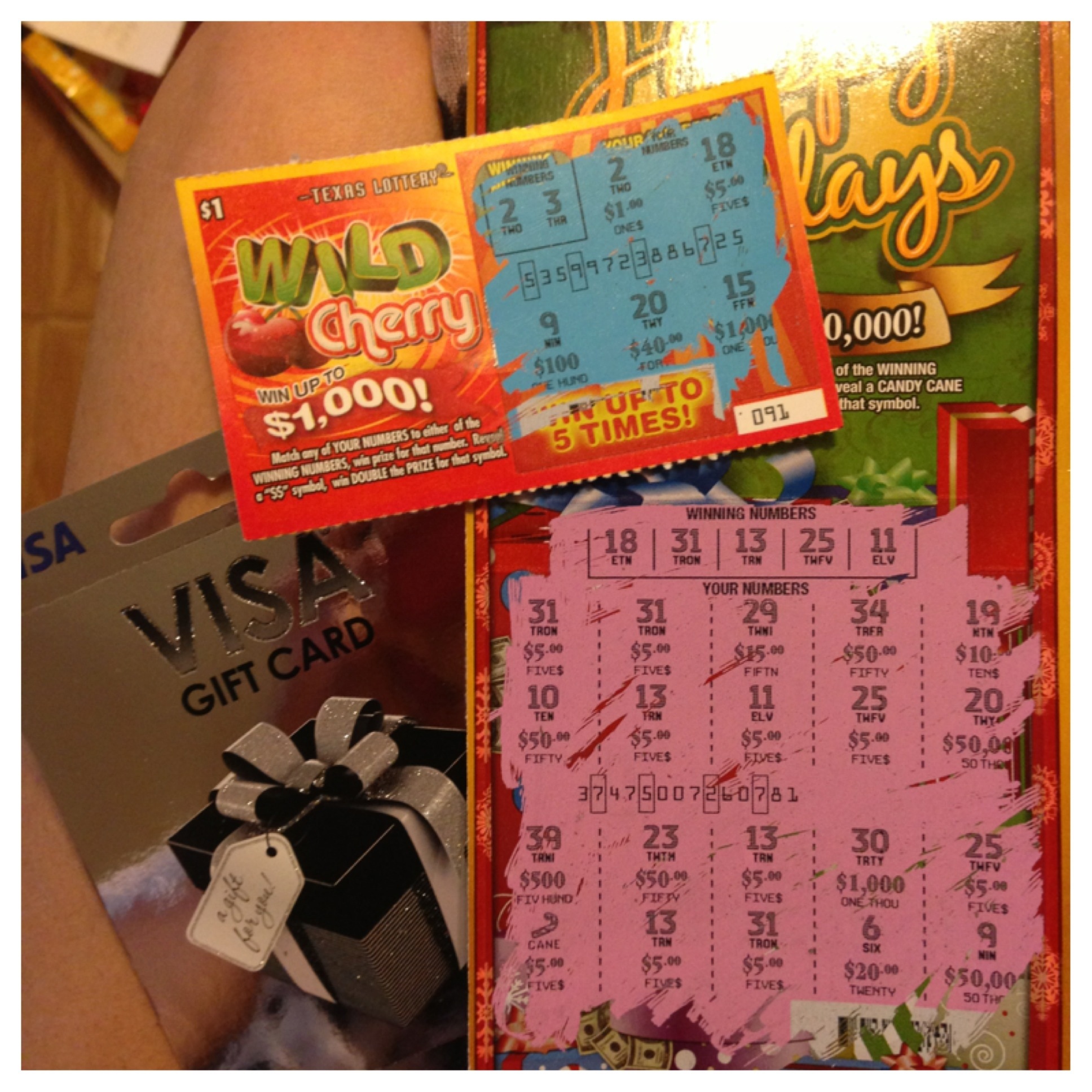 For white elephant this year my little cousin, Paula, was left with my contribution to the game. She opened a cute Disney box filled with a can of Spam, Vienna sausages, a $1 scratch off (a gift I would be thrilled to get haha!), and a mystery envelope on the bottom of the box. One envelope lead to the next, until she travelled my aunt’s whole house, and finally got to the pot of gold located in the fridge. Good things come to those who work for it; she won $51 dollars off the scratch offs alone! On top of the gift card and junk haha.