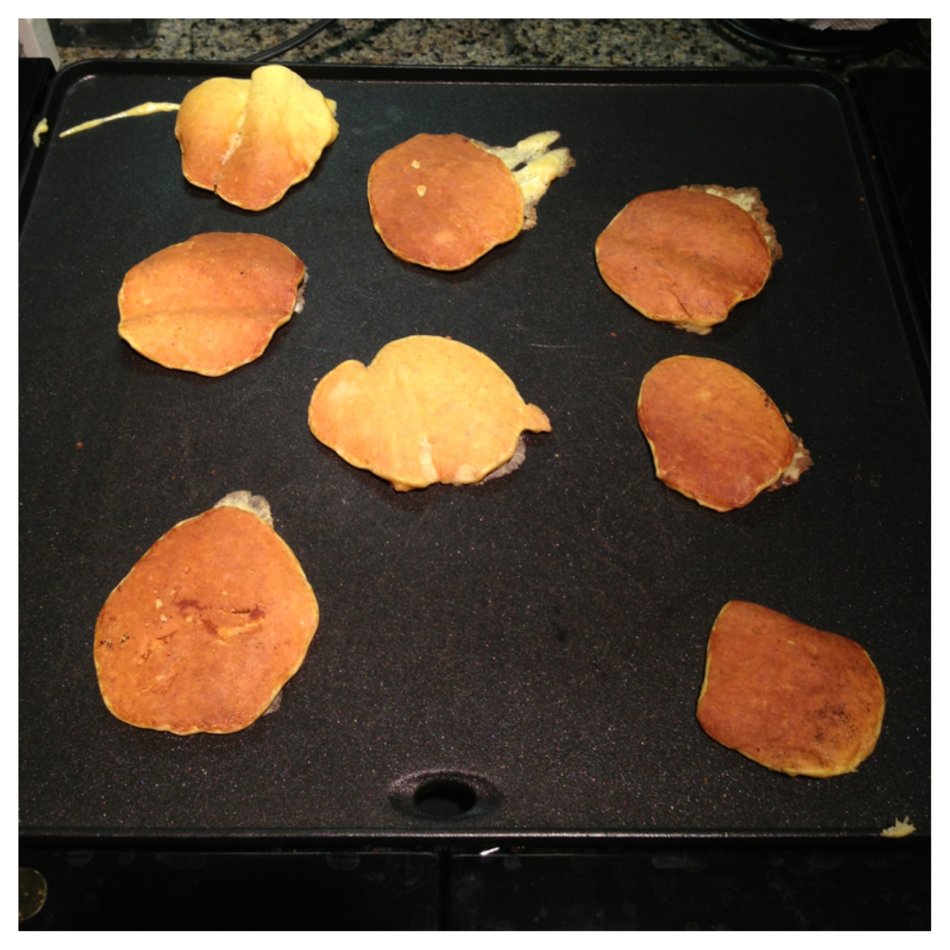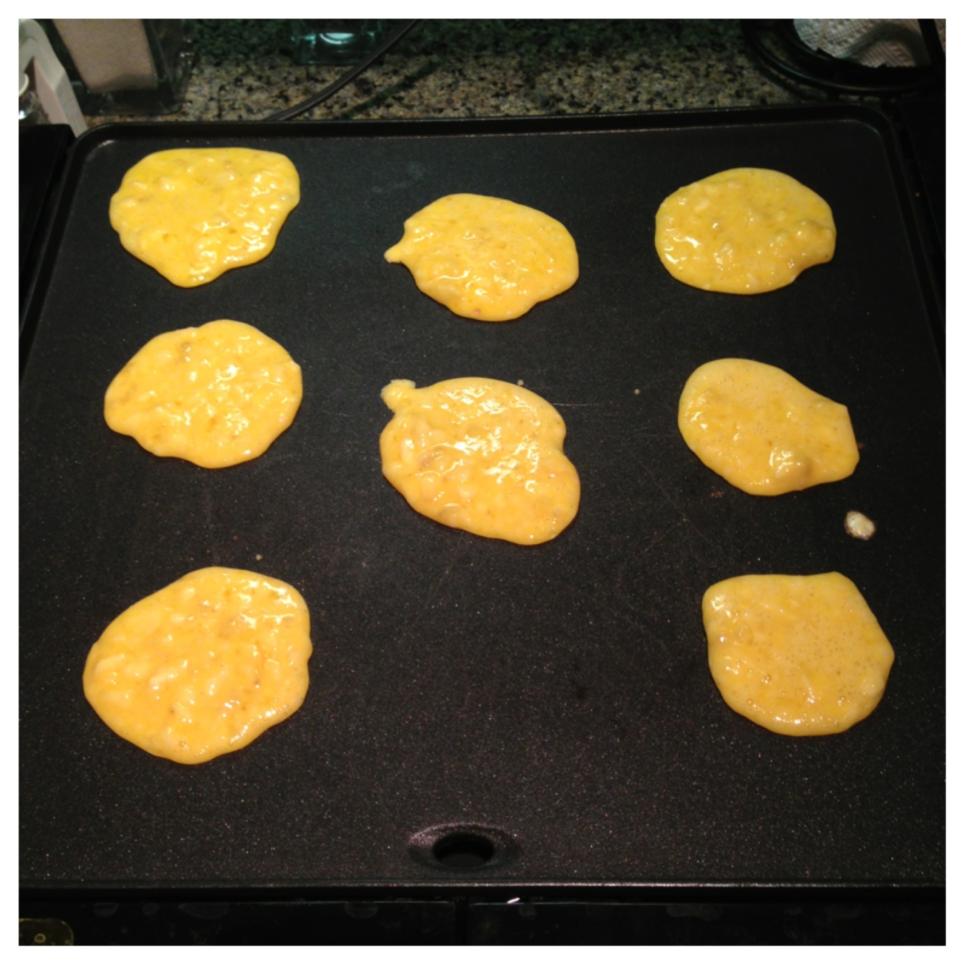 I’m using a nonstick griddle because I don’t like to use oil or sprays. I have mine set to 300Β°f (medium heat if you’re using a skillet). Pour the mixture to the size of pancake you want. I let it sit for 2-3 minutes before I flipped it. Yeah, yeah they aren’t perfect circles but it will do π
