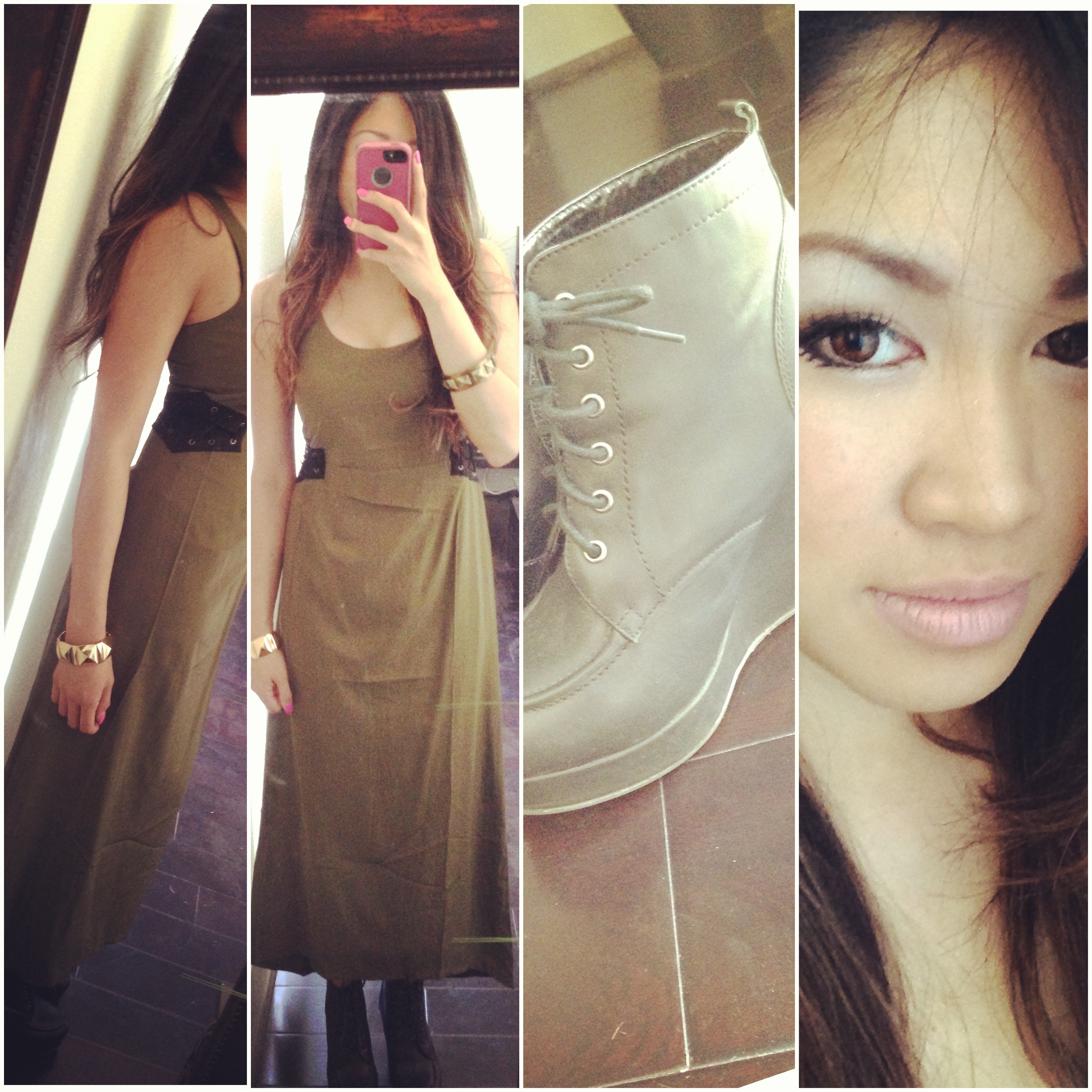 Another pretty and cool day in Dallas. I’m wearing a long silky military inspired dress that I got from Urban Outfitters. Since it was a little misty outside, I paired it with a pair of combat wedges so I wouldn’t get the dress wet. Have a nice day ❤